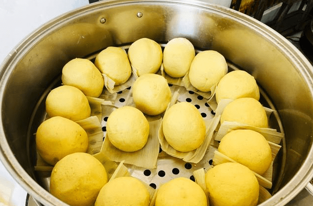 (4)黄米面豆包,又称黄米面粘豆包,为赤峰本地特色小吃,豆包含有丰富的蛋白质,豆皮还可增加纤维的含量。