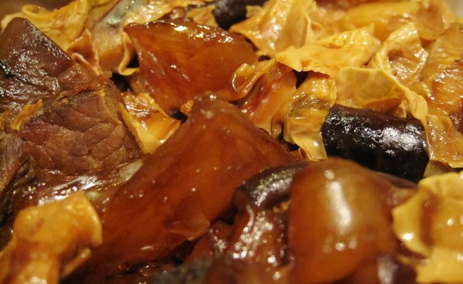 (3)红烧牛蹄筋,内蒙古赤峰市翁牛特旗特色名菜。烧牛蹄筋是一道宴会必备的美食佳肴,它是选用精致的牛蹄筋为制作的原料所烹饪而成的美味。