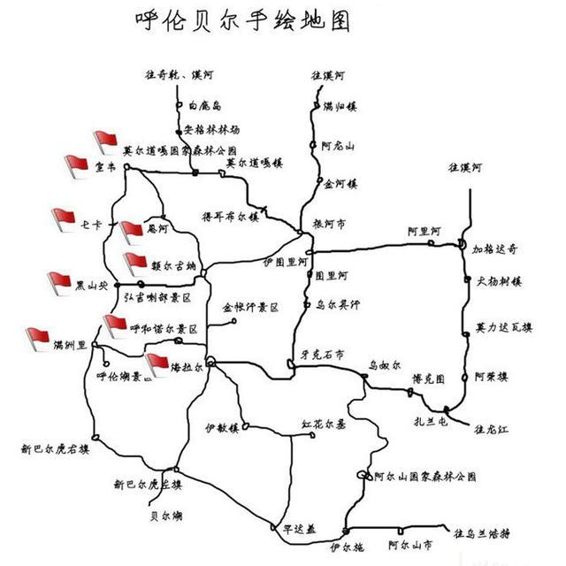 1、北线:海拉尔—金帐汗—额尔古纳—恩河—室韦—莫尔道嘎—临江—黑山头—满洲里—呼和诺尔—海拉尔。