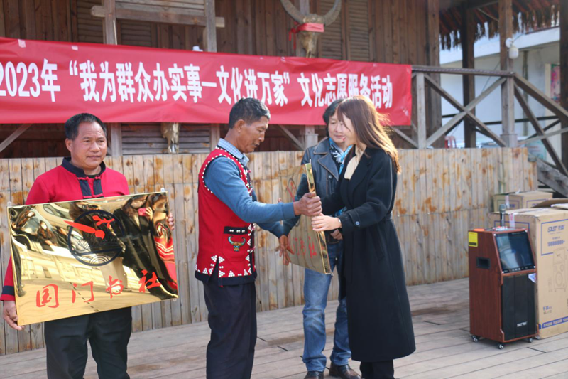 1月10日,澜沧县文化和旅游局走进雪林乡左都村开展“我为群众办实事 文化进万家”文化志愿服务活动,向雪林乡抵边村捐赠文化音响设备,并为抵边村综合文化服务中心和国门书社授牌,不断提升基层群众的文化获得感、幸福感和满意度。