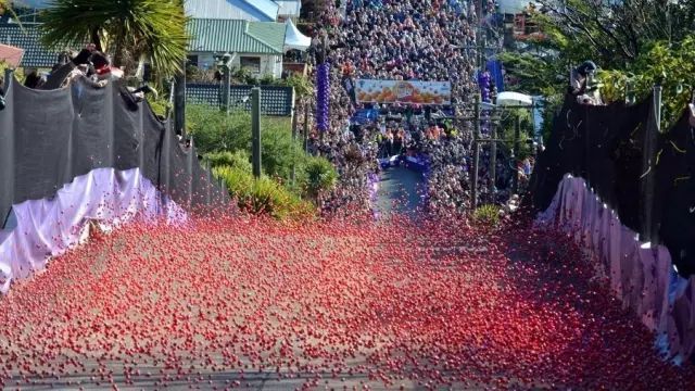 于是,从2002年开始,在这条世界最陡峭的街道上出现了,最特别的竞赛项目,“巧克力豆奔跑大赛”。