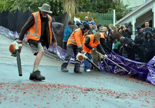 最多达两万五千颗的Jaffa巧克力豆从"世界最陡街道"——鲍德温街倾泻而下,这里瞬间变成了欢乐的巧克力海洋。这些巧克力豆以1纽币的价格销售给参赛人员,所获收入全部捐给慈善机构。