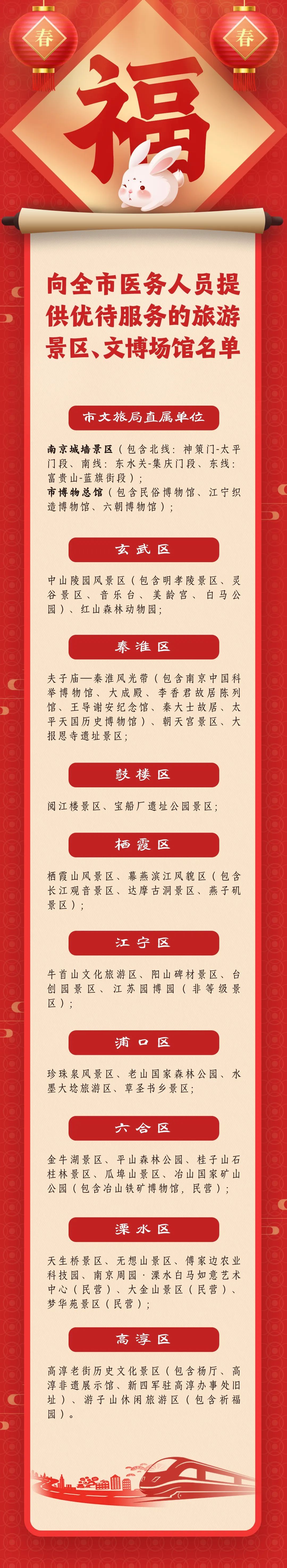 据“南京文旅”微信公众号,南京市旅游景区面向全市医务人员免费开放三年。