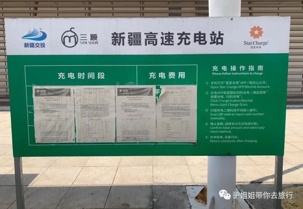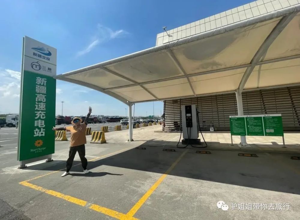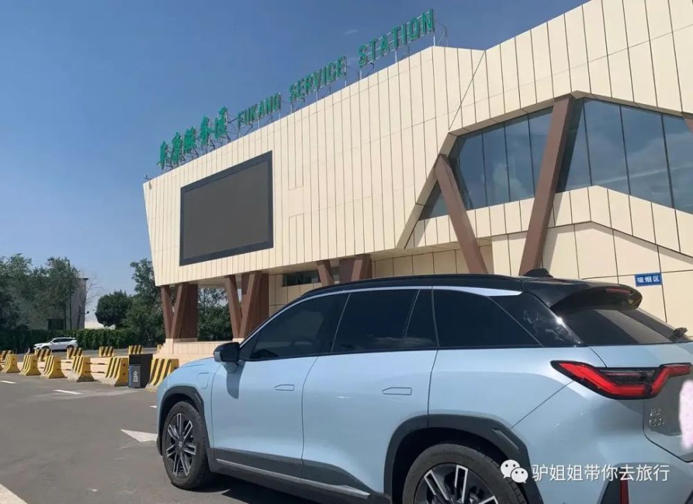 ??第14天:早上从奇台县出发,途径阜康服务区,这是我们进入大西北见到的最好的一个服务区了,停车位加油站充电站设计合理,充电的区域车位多,充电提示牌清晰明了。大厅内部装修既有民族特色又简约大气,场所干净整洁,设施齐全,饭菜都是开放式厨房制作,服务人员主动热情。相比之前经过的服务区,阜康服务区可以说是五星级的了。