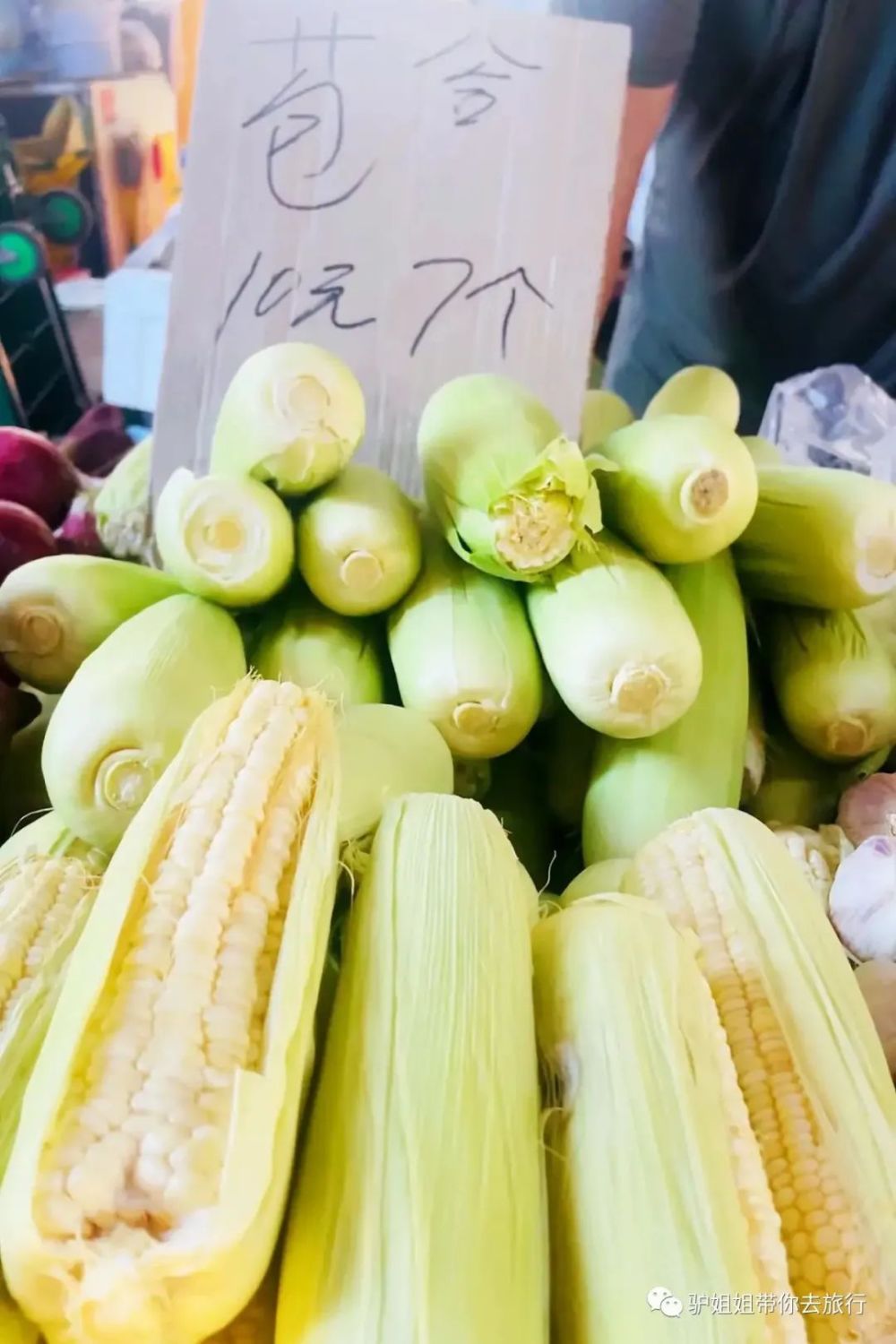 ??第15天:昨晚找到一家民宿,终于可以在酒店烧饭了,老妈想自己做着吃,天天吃饭店感觉油腻大味道重。当地人告诉我们不远处有个柒号庄园,都是最新鲜的菜品和肉,价格也实惠。老妈就喜欢挎着包逛菜市场,出来半个月了,老妈好久没有感受买菜的乐趣了。