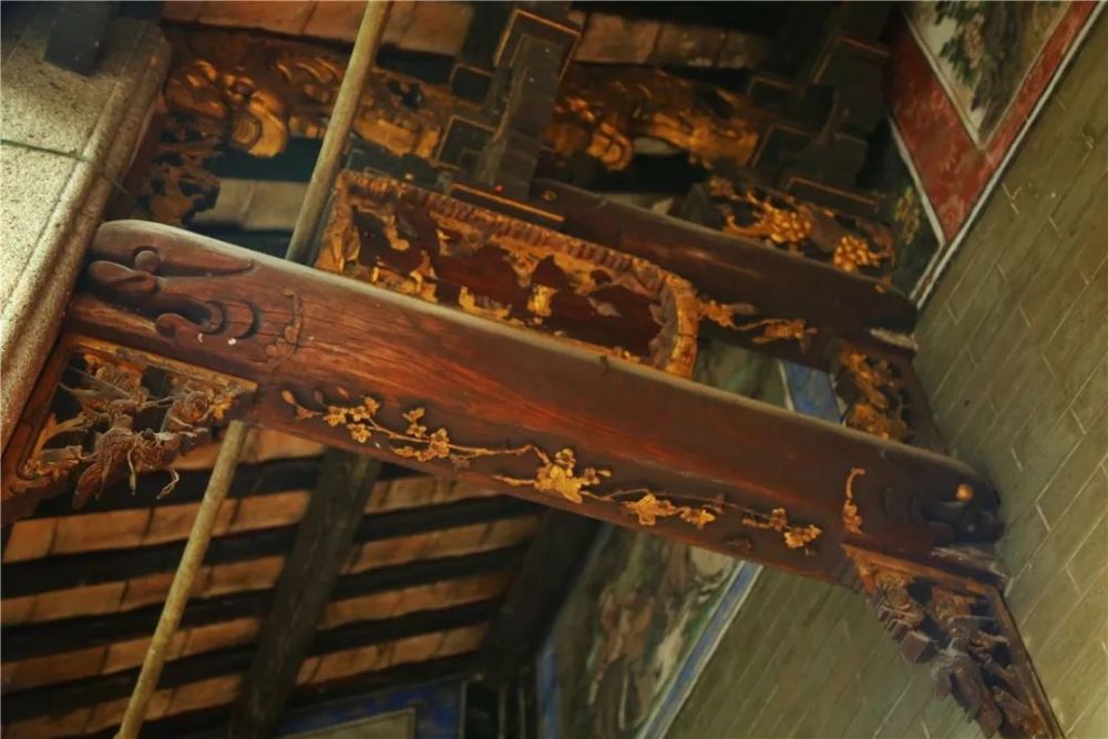 灰塑龙船脊、雕花封檐板、卧狮驼峰梁
