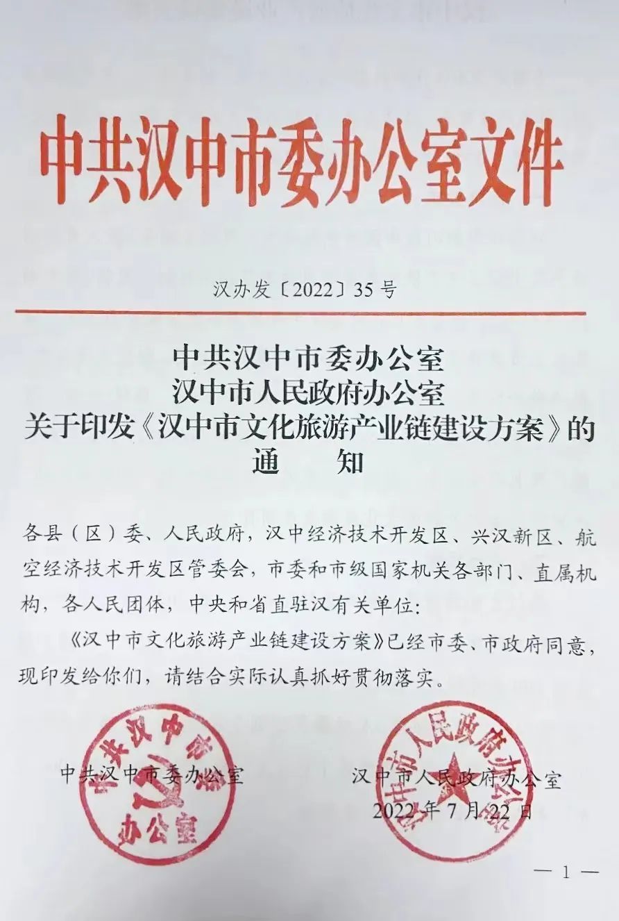 编制印发《汉中市文化旅游产业链建设方案》,明确“一图、一方案、三清单”,实施“建链、强链、延链、补链、稳链”行动,促进文化旅游产业从资源依赖型向创新驱动型转变,着力构建全区域、全时空、全产业链的文化旅游发展新模式。汉台区文化和旅游产业发展势头良好、文旅企业服务体系建设完善受到省政府督查激励通报表扬。