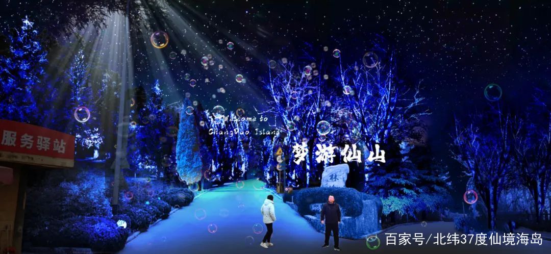 中国首个海岛跨平台多媒体行浸式夜游景区!以光造景,重塑夜间的林海景区,朝看黄海日出,幕观渤海日落,夜赏灯光意境。