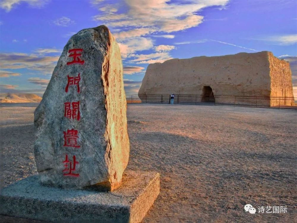注:玉门关又称小方盘城,建于公元前111年左右。为丝绸之路通往西域北道的咽喉要隘,位于敦煌城西北90公里处戈壁滩中。如今小方盘城只是个无房屋的四面土墙围成的土圩子。