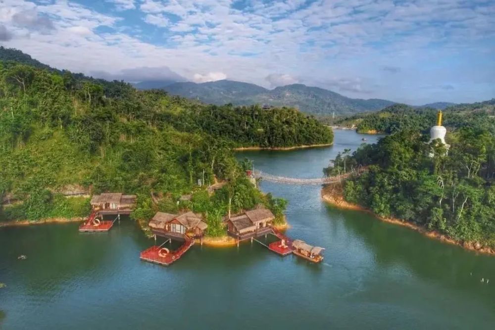 五指山脉南麓的原始热带雨林山谷,分布着湖泊、溪流、栈道、野生荔枝、桫椤丛林。在水上木屋,夜晚欣赏繁星,白天看青山云雾,体会到亲近自然的美妙感受。