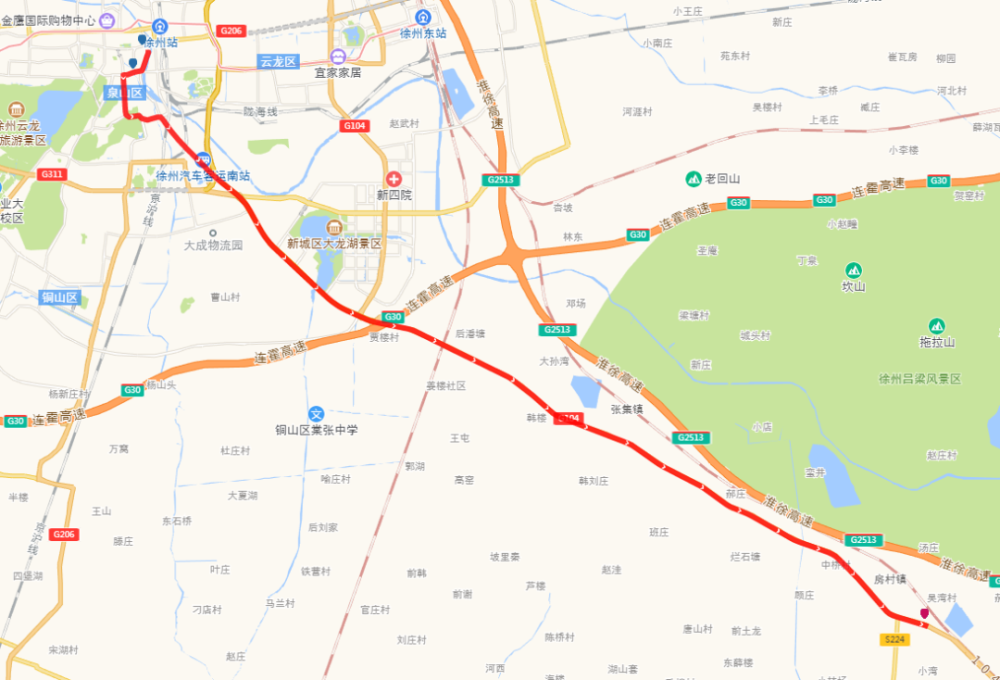 起讫点及服务时间:韩山村南(6:00—21:00)—徐州东站(6:00—21:00)。