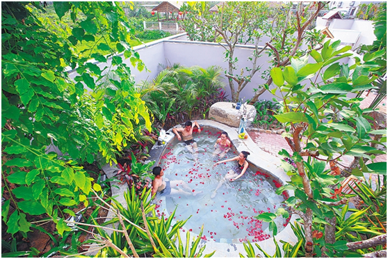 ↑游客在三亚泡温泉。海南日报记者 张杰 摄