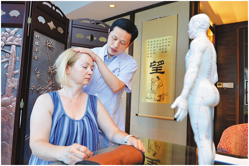 ↑(资料图)在海南三亚国际友好中医疗养院,医师为来自俄罗斯的游客进行中医理疗。新华社记者 郭程 摄