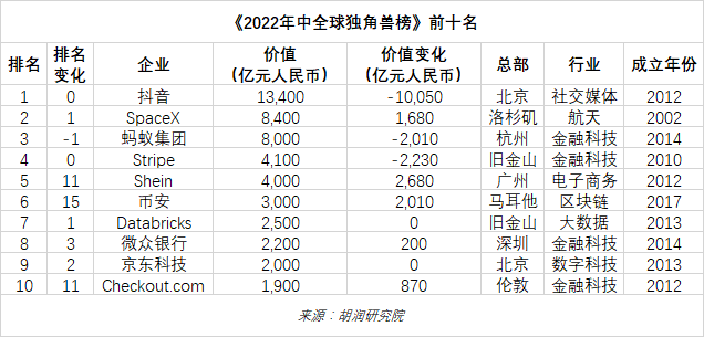 2022年中全球独角兽榜发布?Top10中5家中国企业