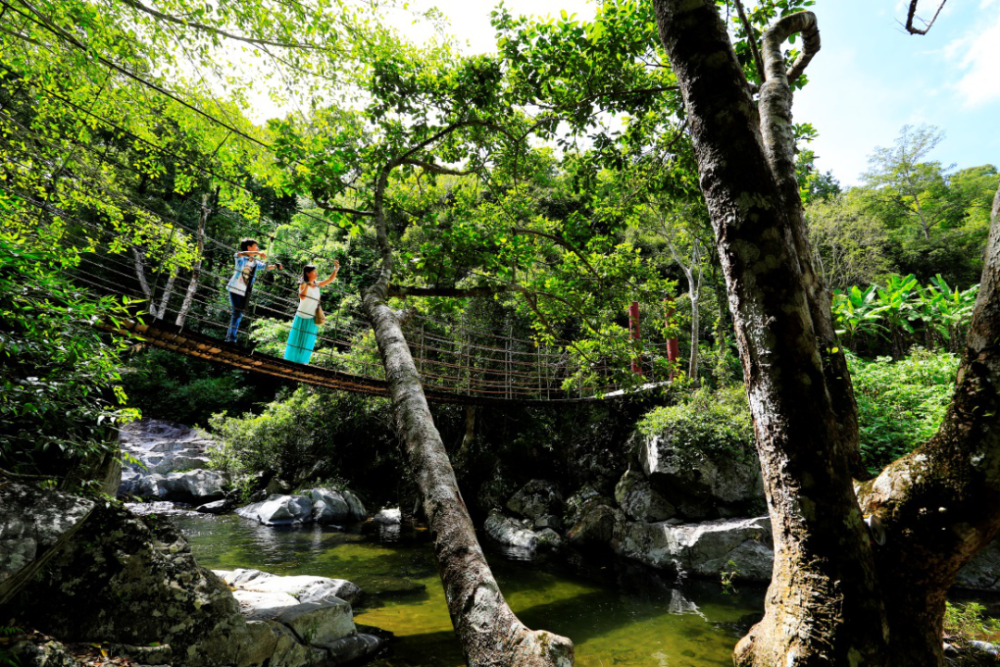 五指山的水满乡是另一种探秘雨林的方式。这个五指山脚下的小镇被包围在原始热带雨林中,山清水秀宛若仙境。水满乡是海南秋意最浓郁的地方,在此宛若置身于北京的香山。
