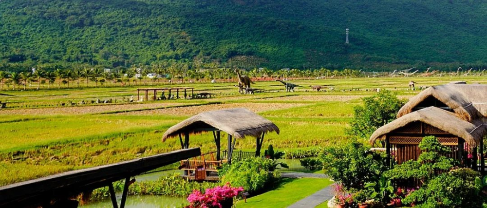 驶出五指山隧道,马上变得豁然开朗,似乎闯入世外桃源,远处群山耸立,绵延不断,映入眼帘的都是绿意盎然。一路向前,路边种植着各类热带作物,芒果、龙眼、荔枝、槟榔一闪而过,新植的三角梅正在盛开,在万绿丛中点缀着一抹红色。