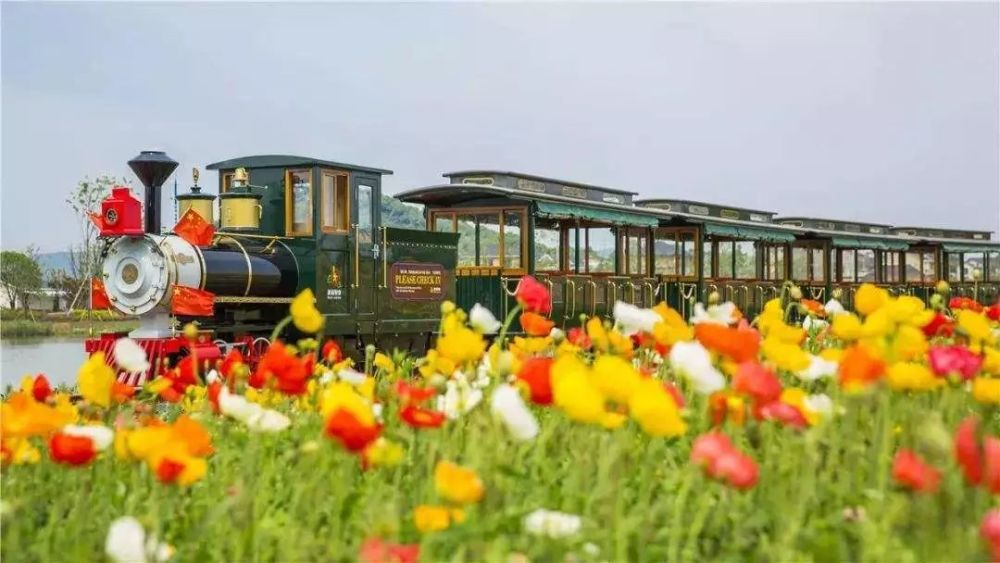 这里花开如毯、色彩斑斓,在弯曲的小道上穿行,微风习习,花香阵阵,与花相伴,小火车带你驶向一个梦幻的童话世界。