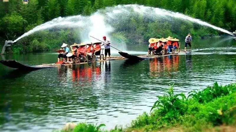 “江南第一漂”,有雨漂、夜漂、冬漂、皮筏漂、竹筏漂等,全程共3.5公里,主要内容为:坐老牛车乡村怀古;边漂流边打水仗,冲漂过坝,有惊无险,可谓老少皆宜;漂流返程可坐游览车,观赏十里竹海。