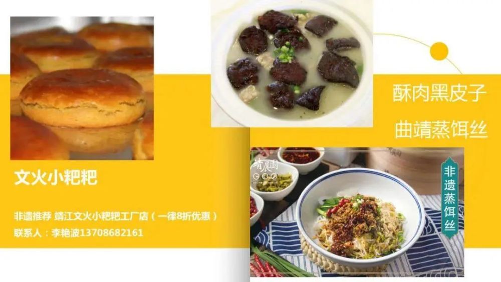 (三)购物推荐:珠源绣韵(所有绣品满100元以上8.8折包邮)、沾益滇溢圆小粑粑(曲靖市内所有门店进店购物满51元送5个火腿酥)、沾益伊滋坊手工米糕(进店满100元9折优惠)
