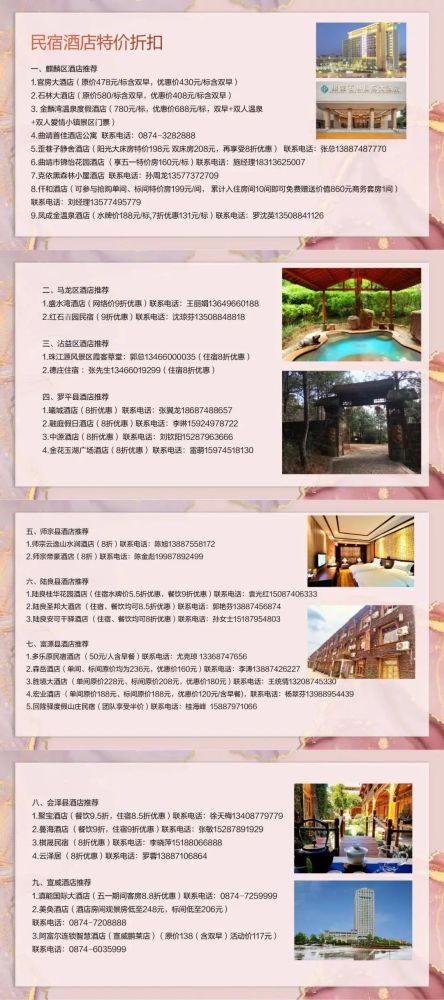 (四)酒店推荐(以下酒店执行8折优惠:曦城酒店、融庭假日酒店、中源酒店、金花玉湖广场酒店、云之梦大酒店