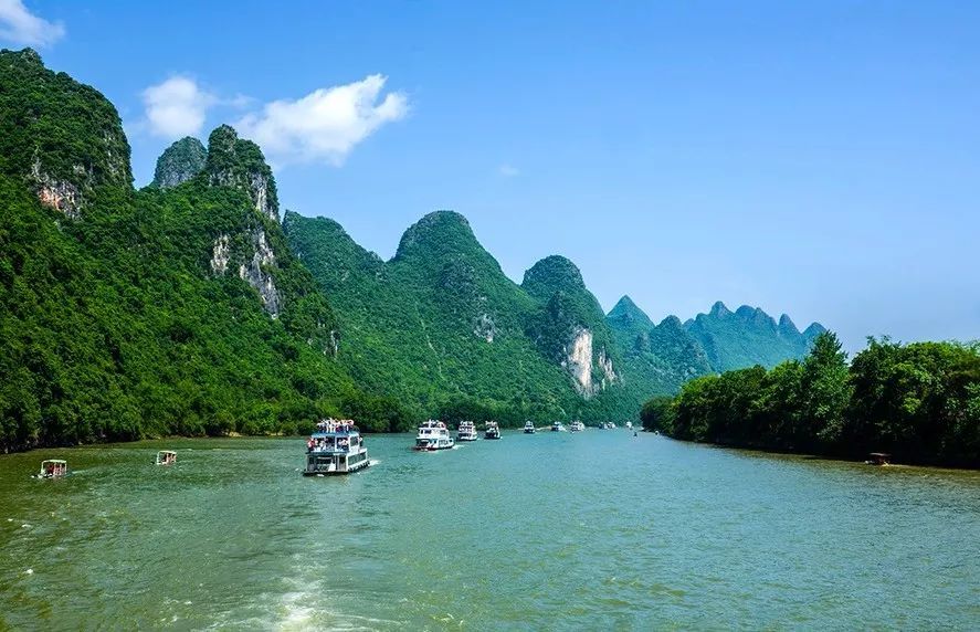 “桂林山水甲”这一句在人们心中刻下了对桂林的印象,其中桂林山水的代表——象鼻山,也是桂林城的象征。“几程漓江曲,万点桂山尖”,漓江是桂林山水的精华,除此之外,还有靖江王城,是我国保存最完好的明藩王府第。