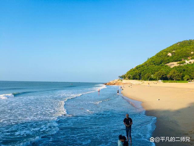 这里水质清澈、浪花洁白、滩长、石奇、山峰错叠,构成一幅如诗如画的山色海景图,海风吹过让人心旷神怡。