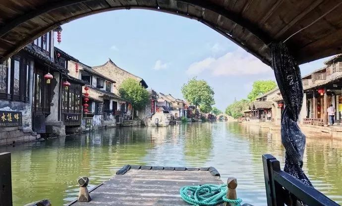 乘一叶小舟行于水上,听着摇动的桨声,感受真实的水乡,像欣赏一幅逐渐展开的江南水乡画轴。