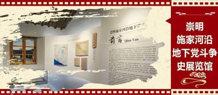 在中共崇明地下党组织的成长发展中,地处今竖新镇直河港至相见港约一平方公里范围内的施家河沿区域,是新中国成立前中共崇明地下党组织重要的活动地区之一。崇明施家河沿地下党斗争史展览馆利用地下党员吴明福老宅改建而成。展览馆共分7间,建筑面积165平方米,宅基地面积415平方米,花园广场占地面积3亩。展厅由“前言、崇明火种、抗日事件、红色堡垒、崇总旧址、英雄辈出、卓绝斗争”等7部分组成,保留了老宅原有风貌,展示了中共崇明地下党组织在抗日战争和解放战争时期发生在施家河沿及其周边地区的红色革命斗争史迹。地址:崇明区竖新镇椿南村806号