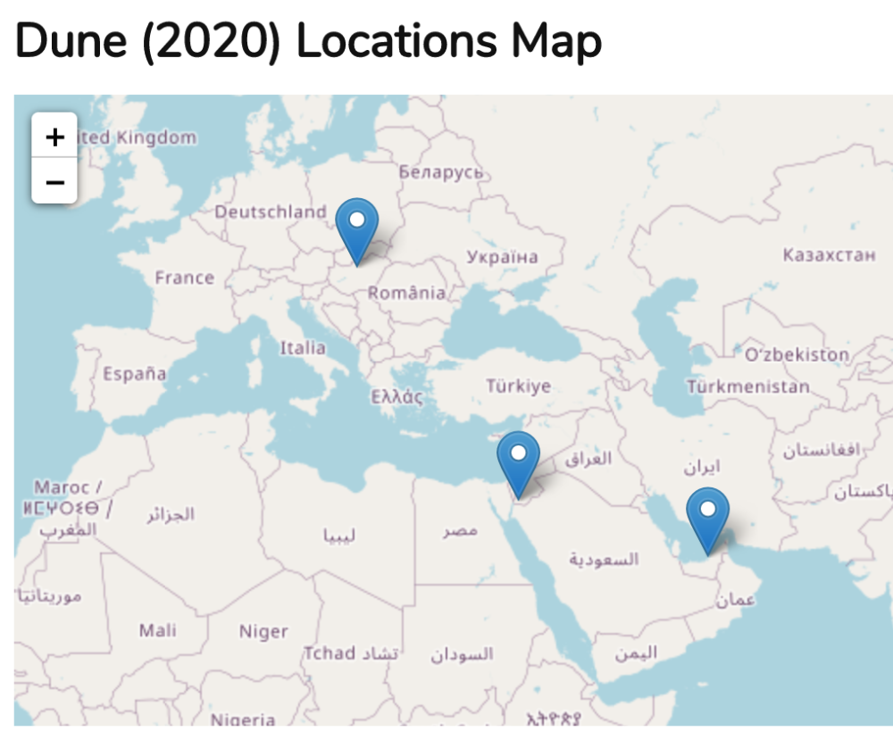 《沙丘》大量采用了实景拍摄,在匈牙利、约旦、斯洛伐克、挪威、阿联酋和奥地利多地取景拍摄,大制作投入可见一斑。
