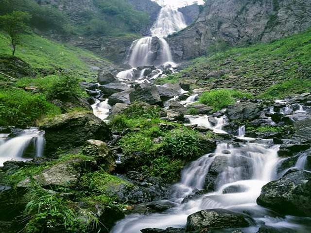 绿渊潭是北坡景区内的一汪水潭,因其潭水极为碧绿清澈,颇似九寨之水,故有“东北小九寨”的美誉。绿渊潭一侧有瀑布顺山崖而下,为潭水增添色彩,景致优雅。绿渊潭瀑布飞流直下,最高落差达26米。
