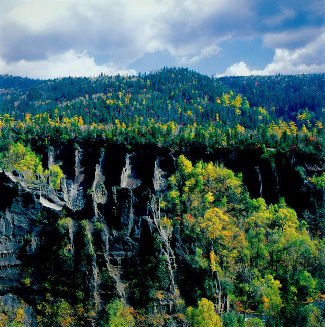 它距天池20公里处,是由于火山喷发时火山熔岩表面的火山灰和泥土被江水和雨水冲刷而成的,北锦江从谷底流下,里面集幽谷、奇峰、怪石、古树、珍草、秀水为一体,被誉为“中国的克罗拉多”、“中国的熔岩盆景”。