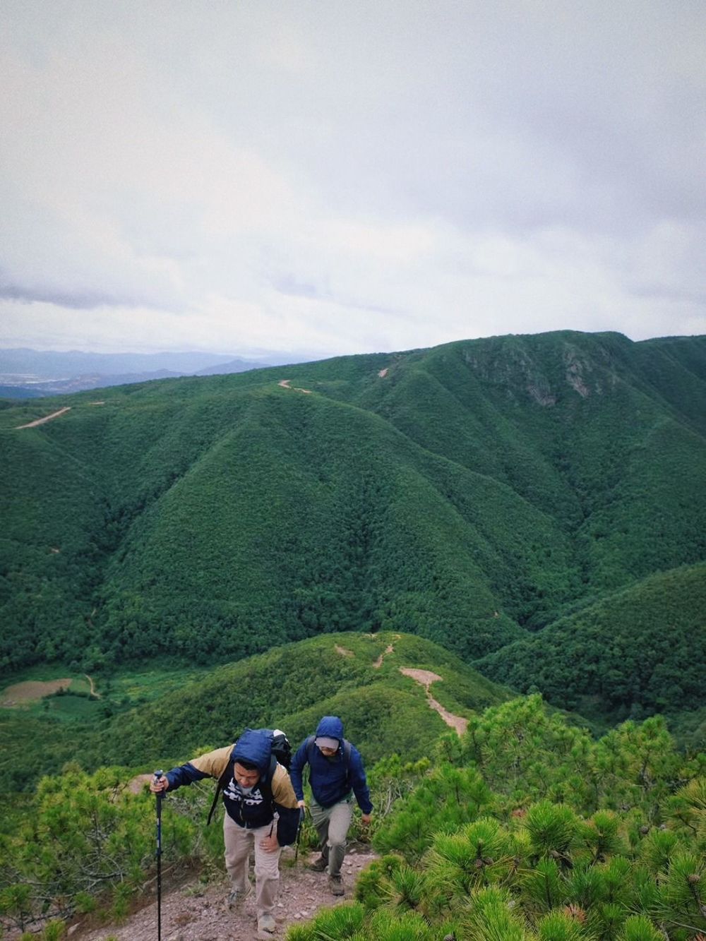 14:30--17:30,徒步红线5.15公里,下降400米返回大陷塘(村庄)。需2-3小时。