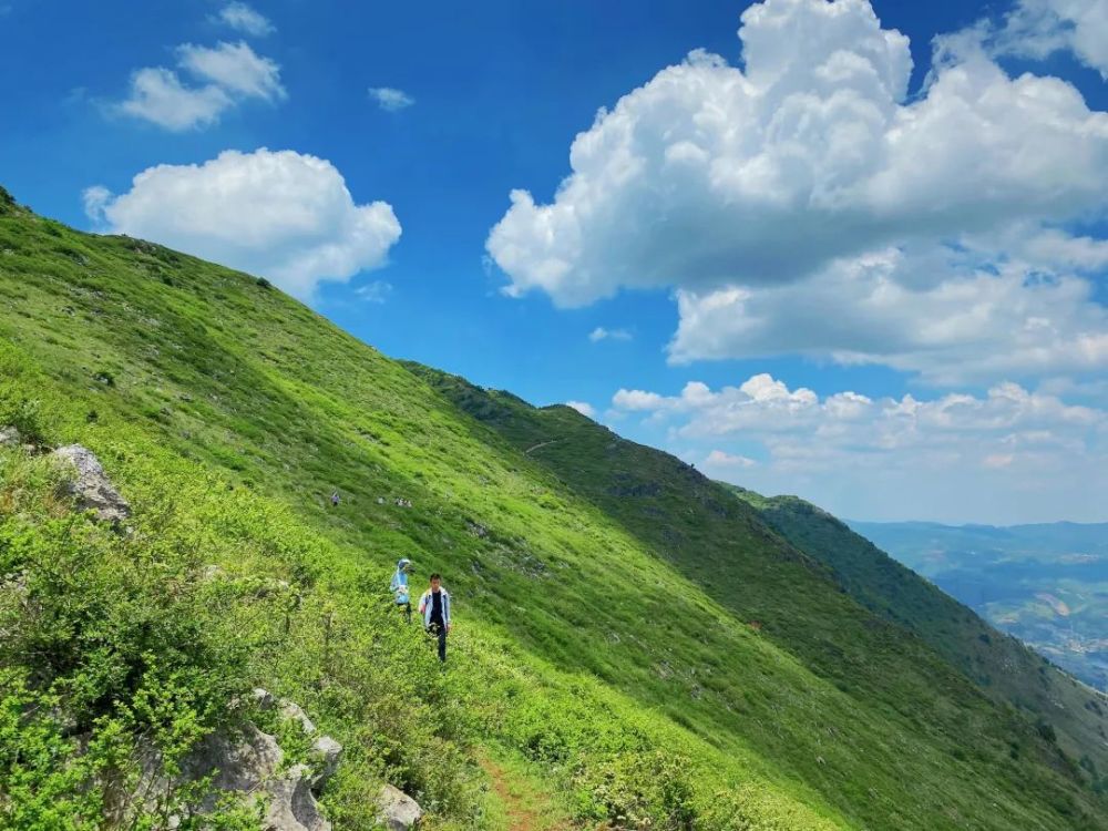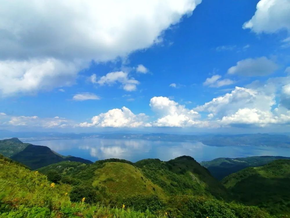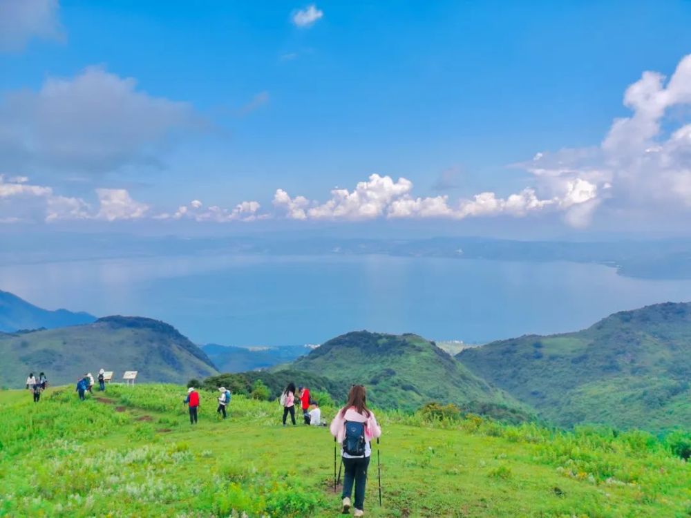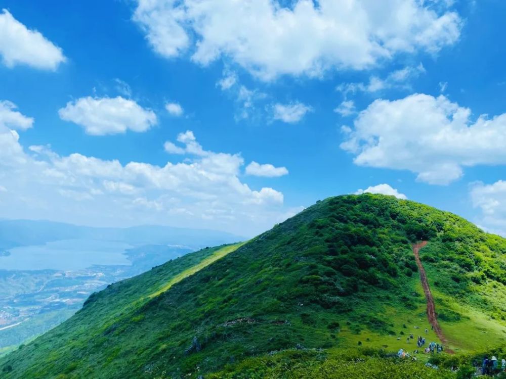 登上主峰,南观星云湖,东看抚仙湖,北眺滇池。山脊之上广阔平缓,草山连结,湖光山色,令人心旷神怡!春夏来登山,穿越开满鲜花的葱郁山谷。秋冬来攀登,柔暖的阳光,呼呼的山风,秋高气爽,美不胜收。