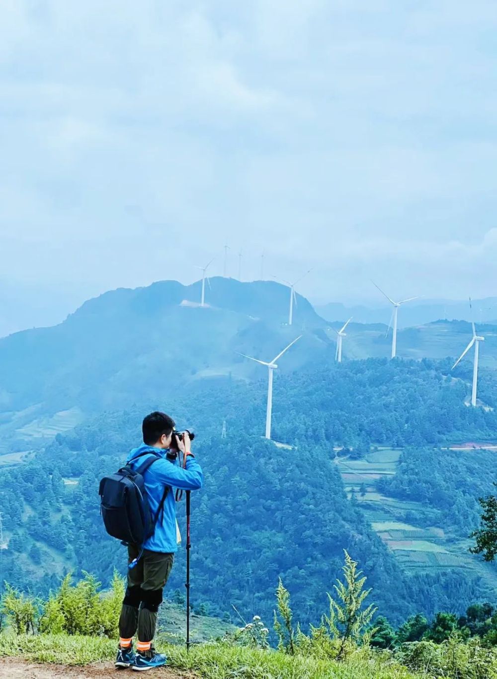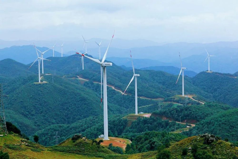 群山环绕,风车遍布