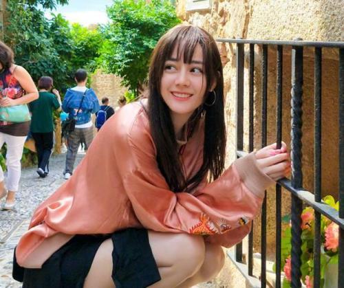 抓拍照是最自然的,旅行的时候,可以像热巴一样,多让自己动起来,比如自然地往前走,让摄影师抓拍,这样的照片不止自然而且有动感,如果搭配边走不经意间的一个回眸就更美了。