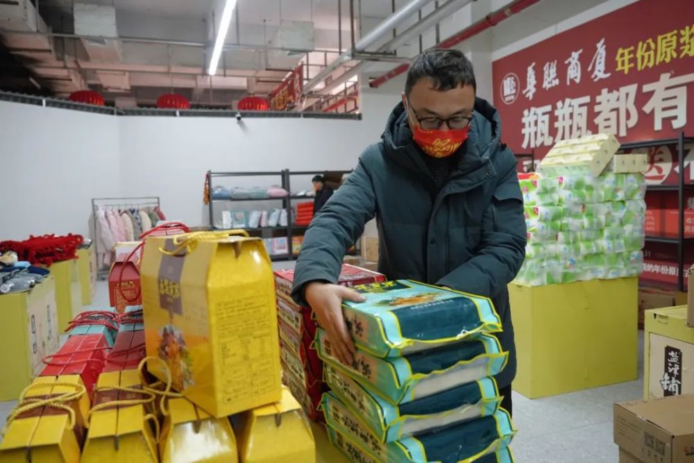 走进华联商厦展区,只见工作人员正在忙着整理即将上架的货物,现场工作井然有序。负责人表示,他们为市民准备了100多种商品,不仅有牛肉汤、酒、大米等食品类,还有衣帽,床上用品等,期待市民朋友们在节庆期间前来选购。