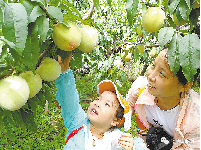 7月19日上午,市民张先生一家利用周末时间,驾车来到湛河区河滨街道潘庄村采摘桃子。对于不少市民来说,周末到周边逛一逛已成为一种休闲模式。