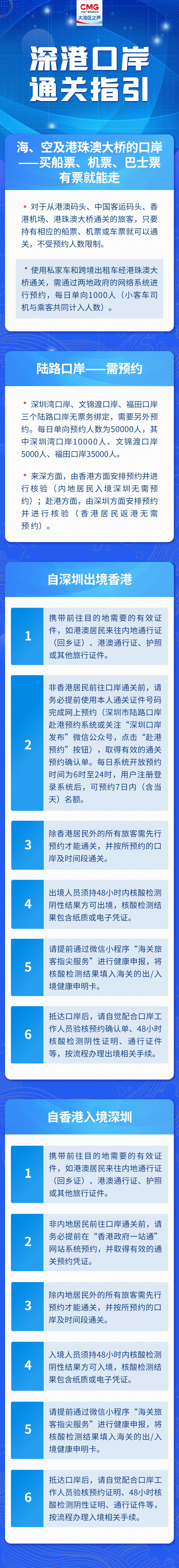 1月8日开始恢复第一阶段通关,共有7个码头可通关:港珠澳大桥、港澳客运码头、中港客运码头、香港机场、深圳湾口岸、文锦渡口岸、福田口岸。