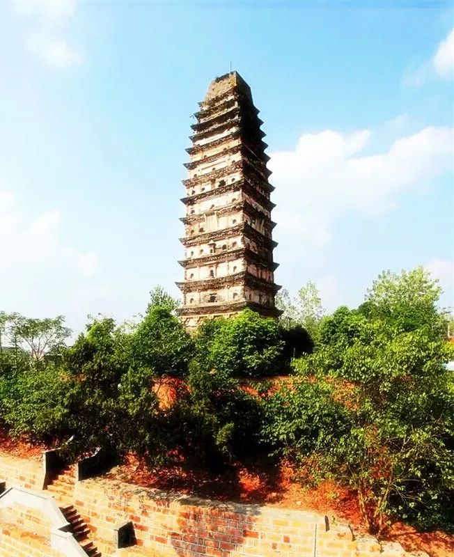三江宋塔位于井研县城南13公里处的三江镇东头小山丘上。塔为密檐式砖木结构,塔身为须弥座四方形,通高28米,共13层。从塔上可瞭望茫溪河、月波河和木瓜河,故此,小镇得名"三江"。