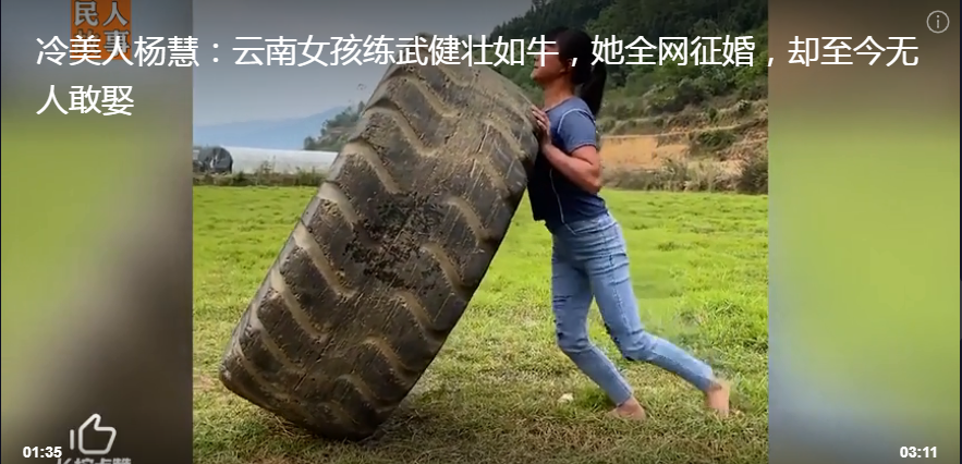 现在很多视频网平台上,云南保山95后女生练功的视频走红,有的视频还说,全网征婚,不要彩礼。