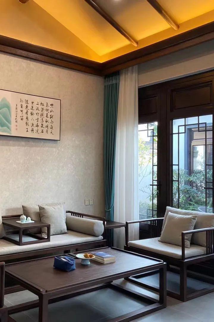 江南里民宿是新中式的装修风格,屋内的家具、字画、装饰和屋檐的雕梁画栋都给人一种置身江南的感觉。