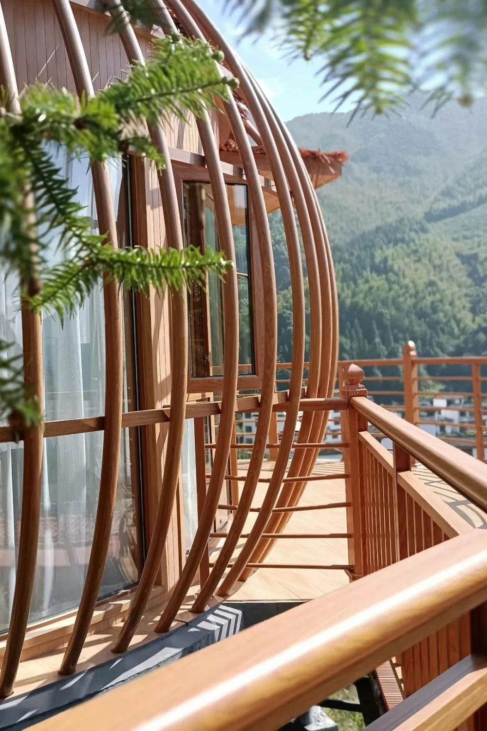 养心谷生态民宿采用独特的鸟巢树屋,悬于山腰之上,木质栈道串联起了每处独栋民宿之间。建筑外观采用了仿生设计,设计感极强。