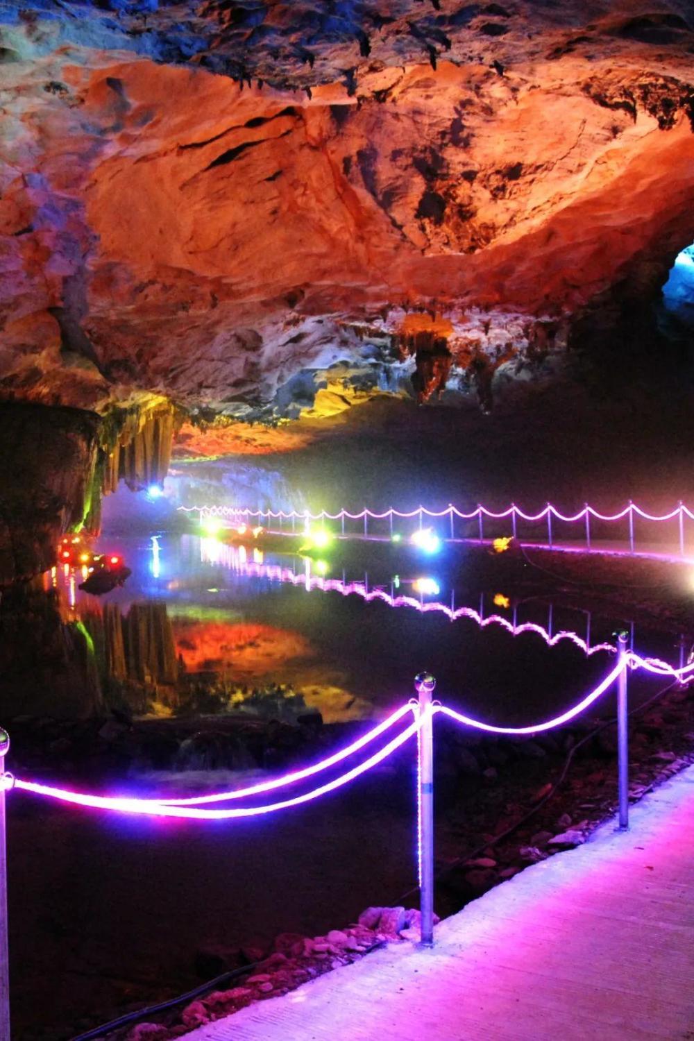 最有趣的是隐水洞内独特的游览方式,分三部分:上游1/3游人可泛舟地下河,聆听地下河水声;中游1/3可乘坐轨道车快速体验移步换景;下游1/3可步行,零距离观察自然景观。