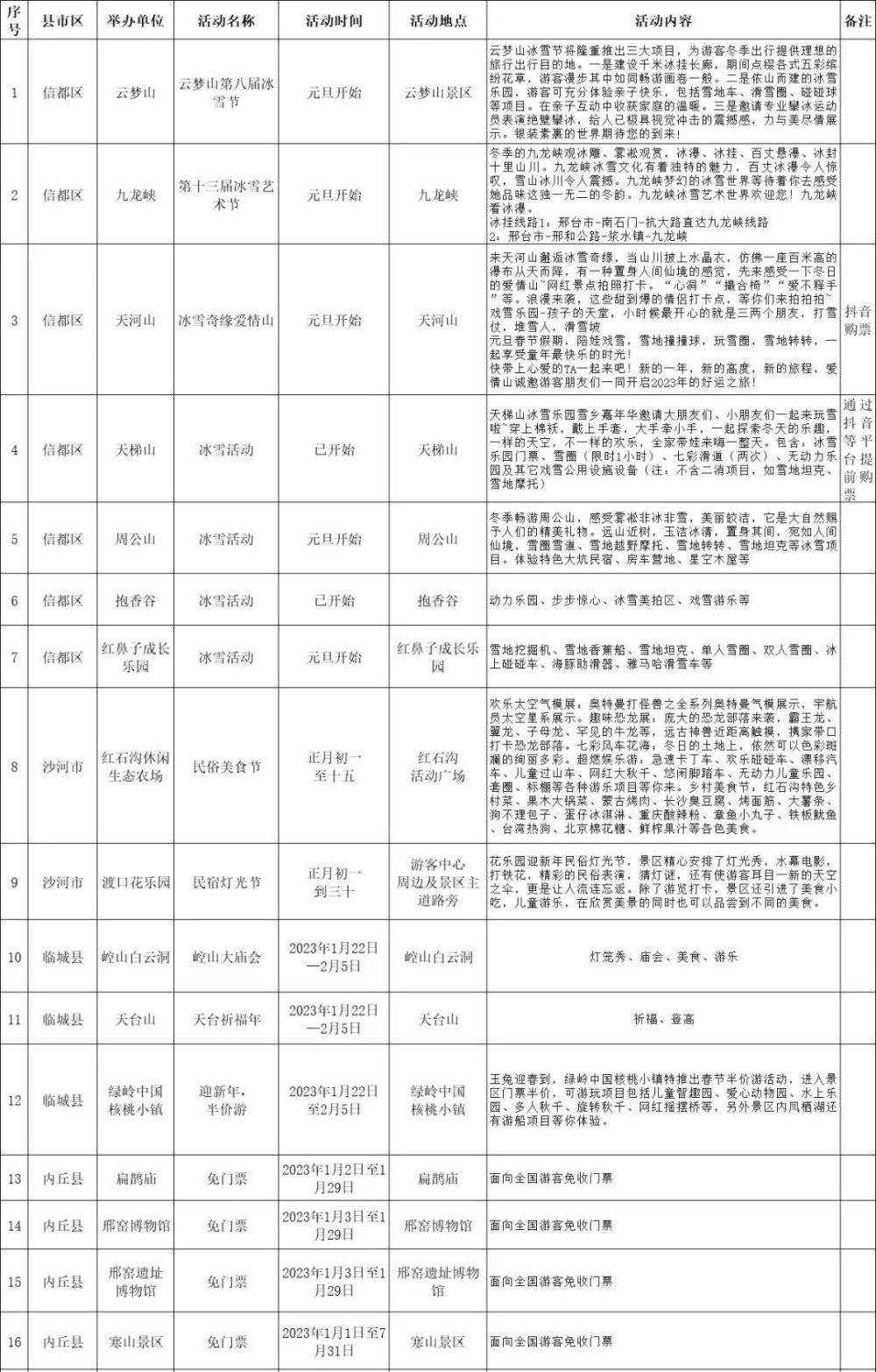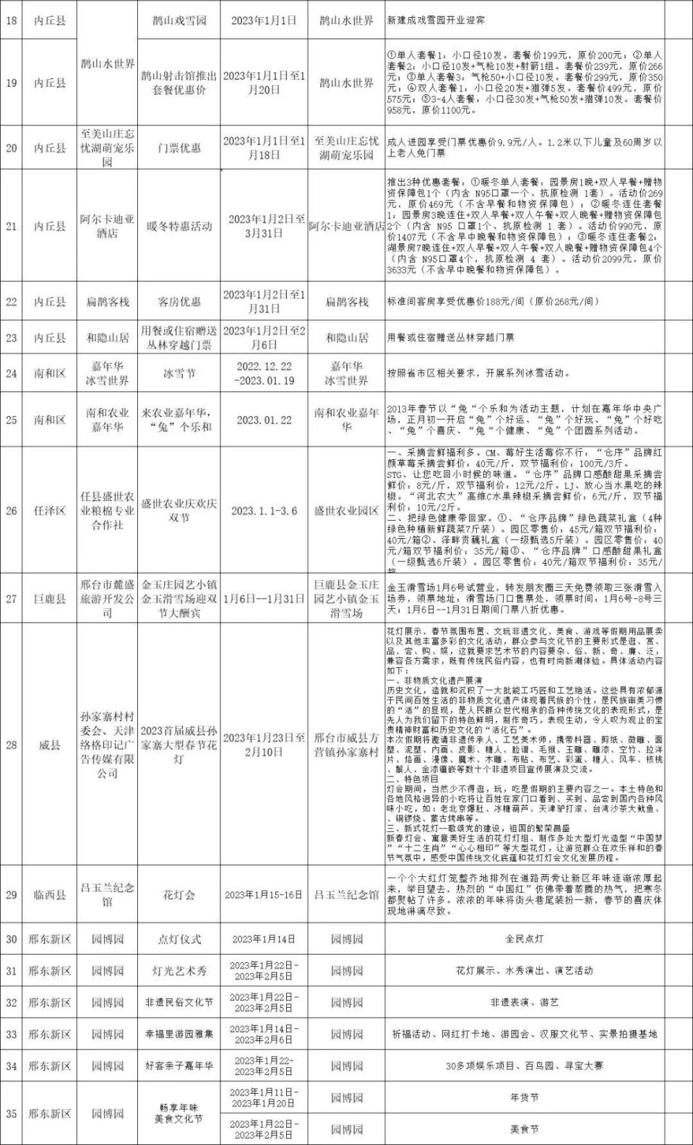 为推进文化旅游产业振兴,繁荣文化旅游市场,邢台市文化广电和旅游局推出“冰雪迎蓝兔·牛城闹新春”文旅惠民系列活动,进一步刺激文化旅游市场消费活力,营造浓厚的节日氛围。