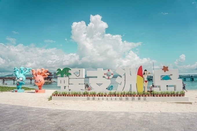三亚一个岛上有很多景点,如果没有婷婷的陪同 我们就准备租用电瓶车,花费也不少,但其实景 点离得很近,走路就可以到达,又省了一笔花费!