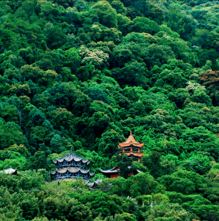 登上山顶,清新的空气刹那间扑面而来,看那山上林木葱郁,山林庙宇巍峨点缀其间,别提多美了。