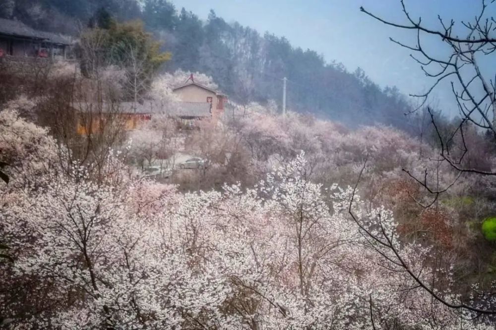 平武走马羌寨地处九寨沟环线上,位于平武县平通镇牛飞村。春天万亩梅林环抱的古羌寨里,邻靠四季清澈见底的清漪江畔,羊头、碉楼、檐角等羌族特色在这里彰显到位。