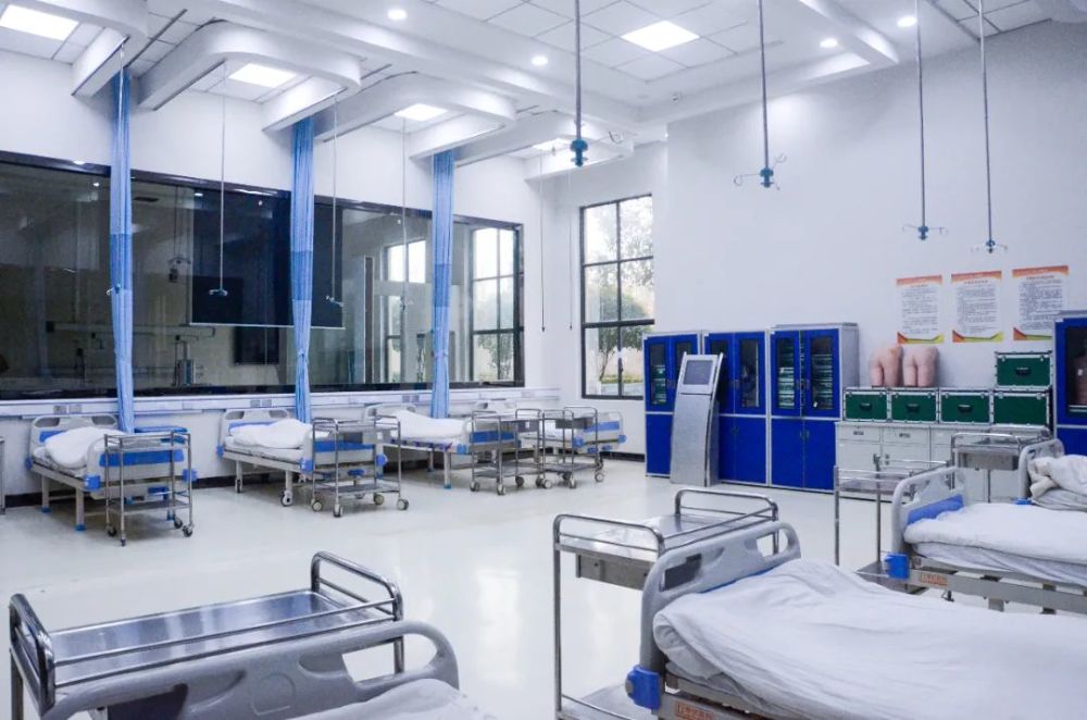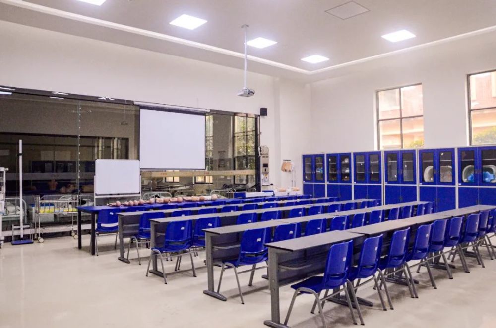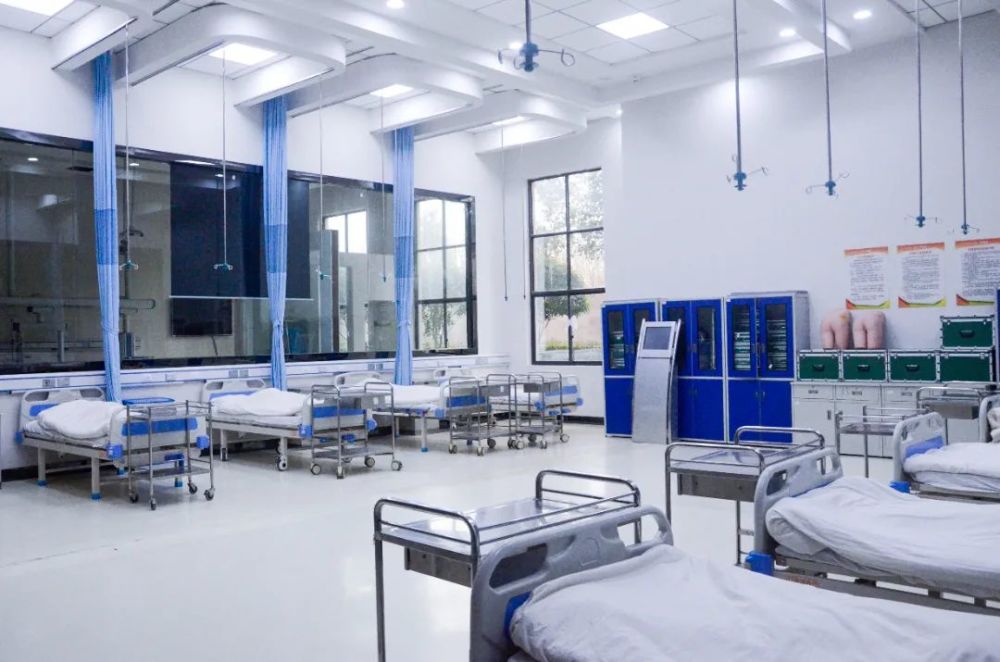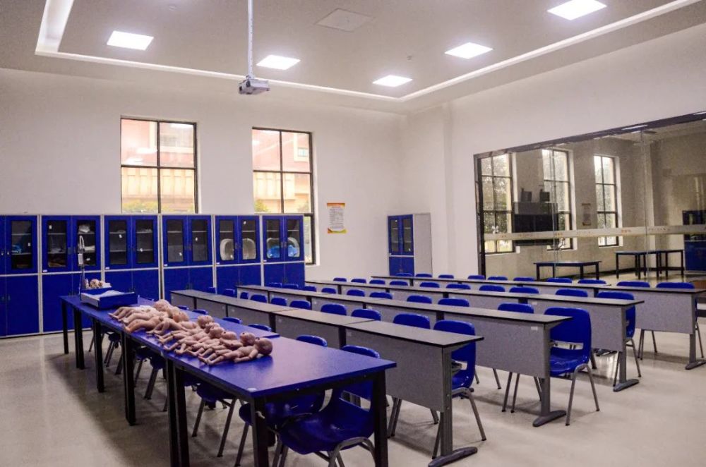该实验室作为护理专业课程实验室,可承担成人护理模拟训练,心肺复苏等试验,同时还可以作为教师与学生技能竞赛项目技能训练的场所。