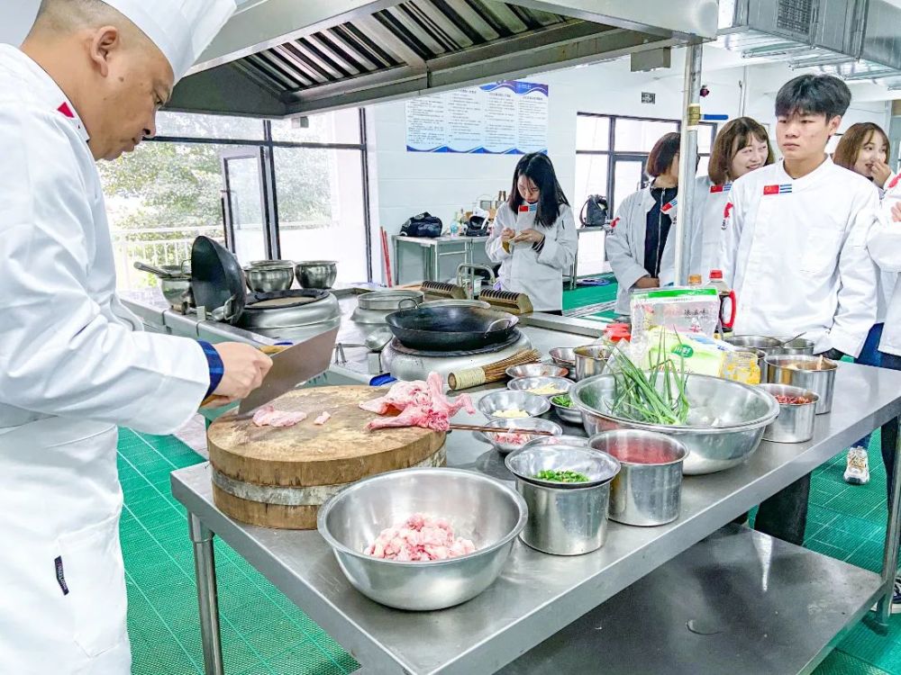 烹饪实训室主要是进行基本功训练的场地,主要承担刀工、锅功、雕刻、拼盘等专业基本功的教学和训练,服务于烹饪工艺与营养、食品加工技术等专业。实训室可容纳30-50名学生进行实训,可提供刀工、锅功、雕刻、拼盘等基本功实训之用,同时具有烹调师社会培训和职业技能考评的功能。