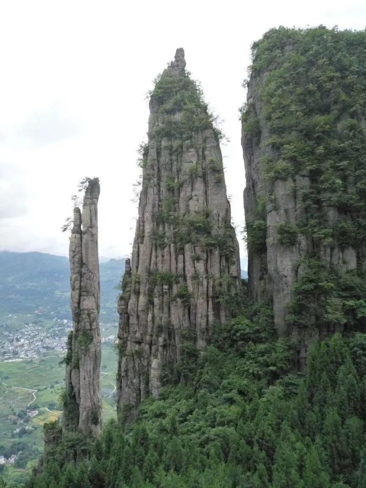 看着这些,我的心仿佛被融化进这样的奇情美景之中。我又扫一眼车内的亲友们,车内鸦雀无声,显然他们也被这山光水色所迷醉,气氛顿觉肃然。上了一个山头,这里视野更加开阔,风景美丽如画。亲友们纷纷要求下车登上一个观景台,举目瞭望,拍照留影。之后中巴继续行驶在崇山峻岭中,绕过一保存完好的原始森林边沿,到达了恩施大峡谷景区。